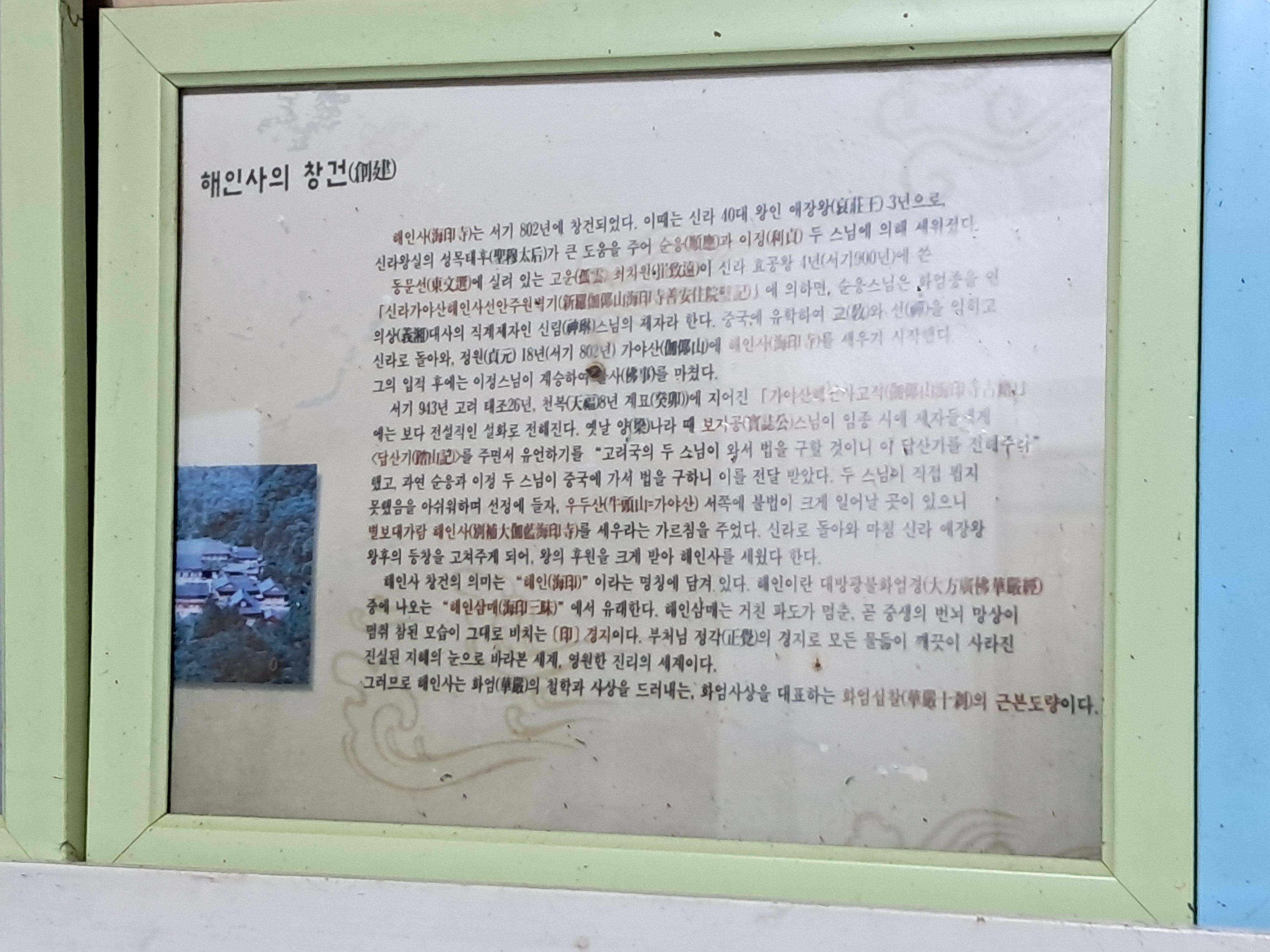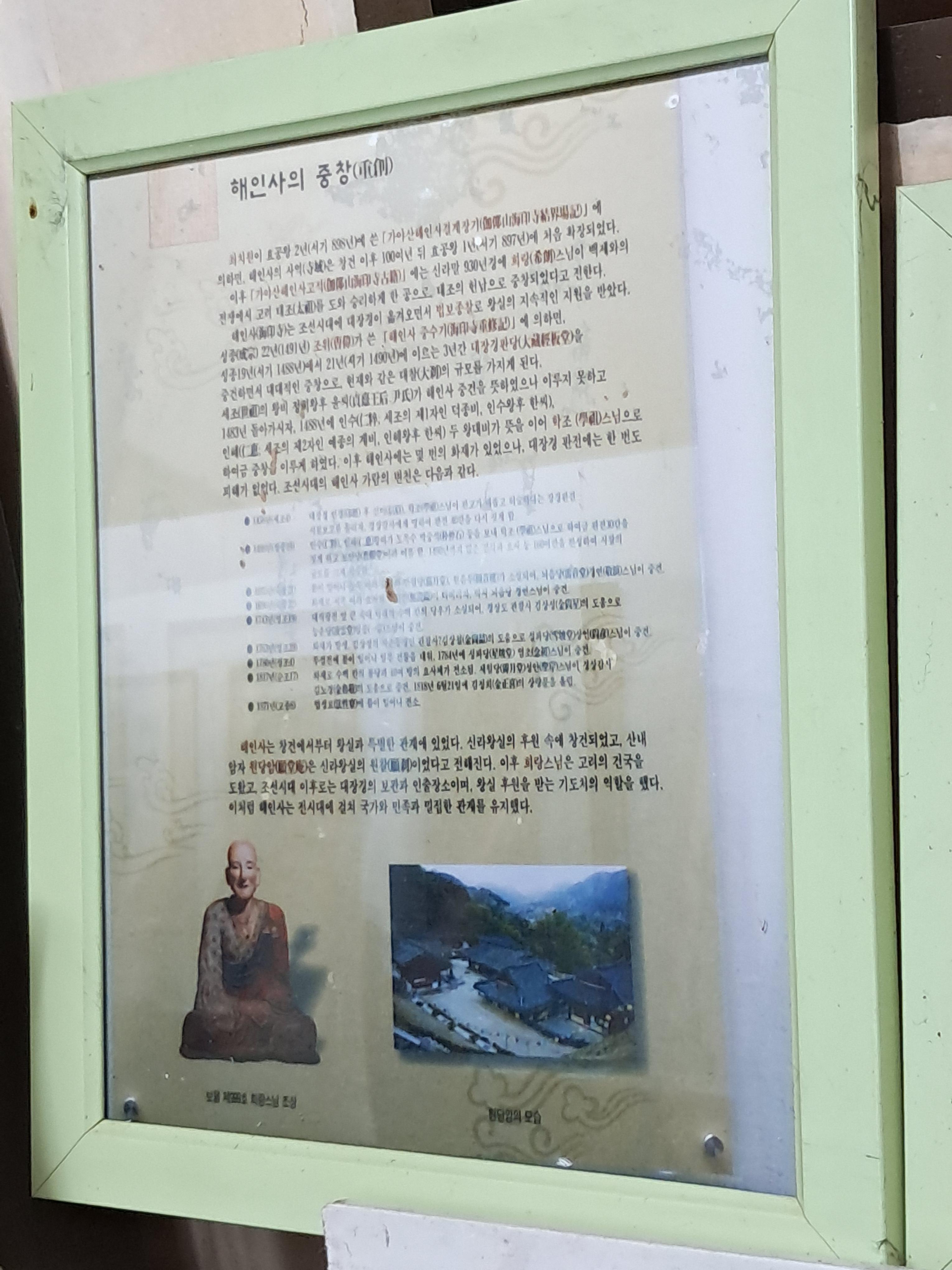 오늘사진 글 / 옛날 가야서당 덕원정 주택이다, 전나무와 학사대 대문이 있었는데 해인사가 철거하고 공사로 나무를 죽이고, 집터라는 비석은 고운암이 이용하고 홍류동천 농산정 정자는 이용당하고, 사실은 1989년에 최평열이가 127호로 문화재등록하였는데, 학사당 영각 허물고있어 이곳으로 온겨 모시고, 가야산 홍류동, 문창후 고운 최치원 선생 학사당유걔 농산정유계 만들어 추모 행사하던 그때 상황사진 등과