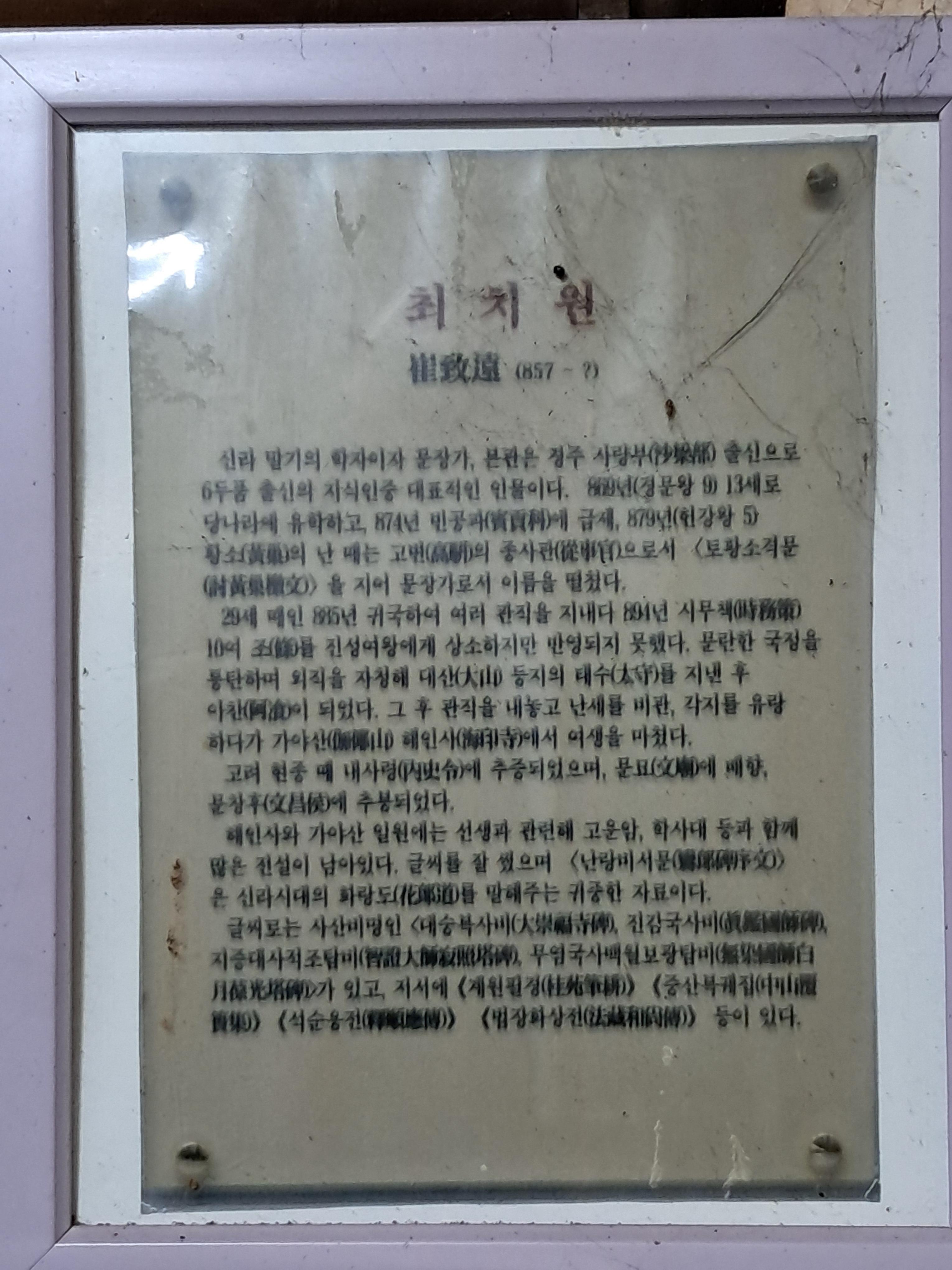 1. 공지상항: 홍류동 학사당 농산정 가야서당 학사대 등 고운 최치원선생 유적관련