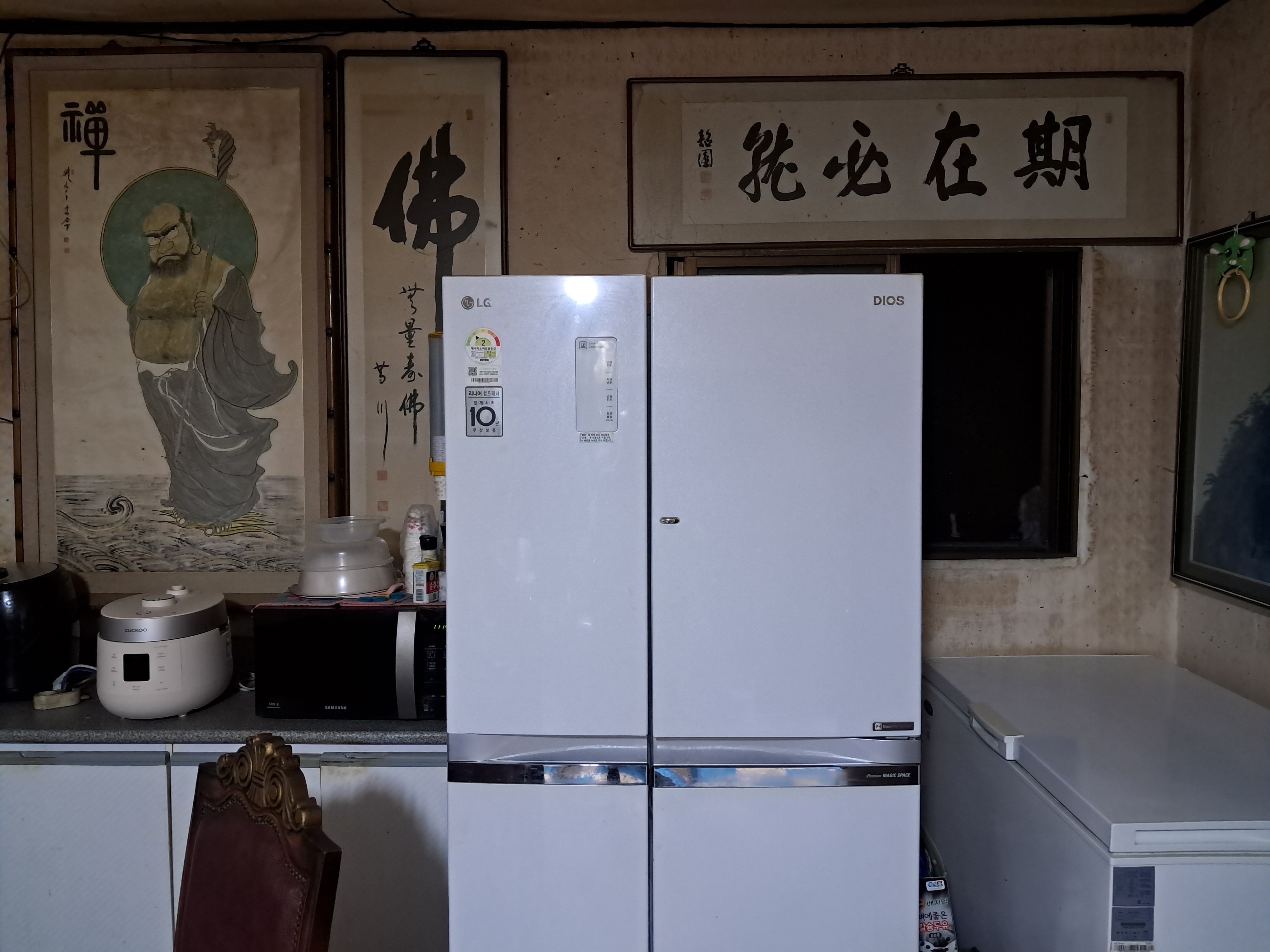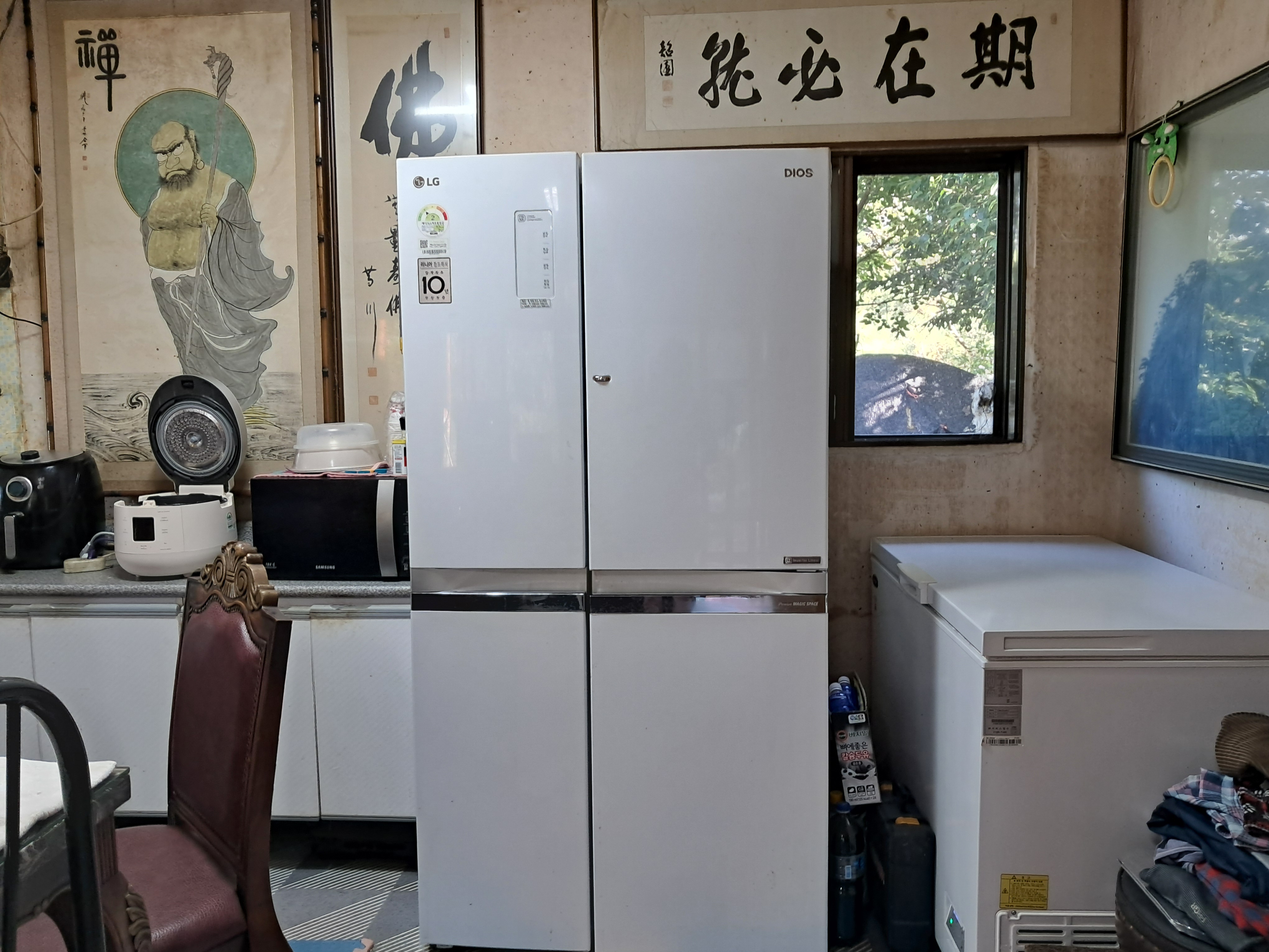 조상님전 향불 피우고 홍류동 중시조 고운선생님 유적 추모행사상황 및 사업 등 사진전에 기도하고, 오늘 딸이 보낸 냉동고가 온다 놀 자리 등 주비하고 정리한다, 농원 마당에 꿏중 다알리아꽃 나팔꽃 난초꽃 봉숭화꽃 백일홍꽃 능소화꽃 등이 있고 어제줌 만들었던 물통 뚜궁 크기를 확인하고, 텃밭에 대파에 풀을 제거하고, 느티나무 팽나무 숲 표고버섯장 경비견 개 밥주고, 12시 무렵에 냉동고가 도착하고 정리하는 등 ~