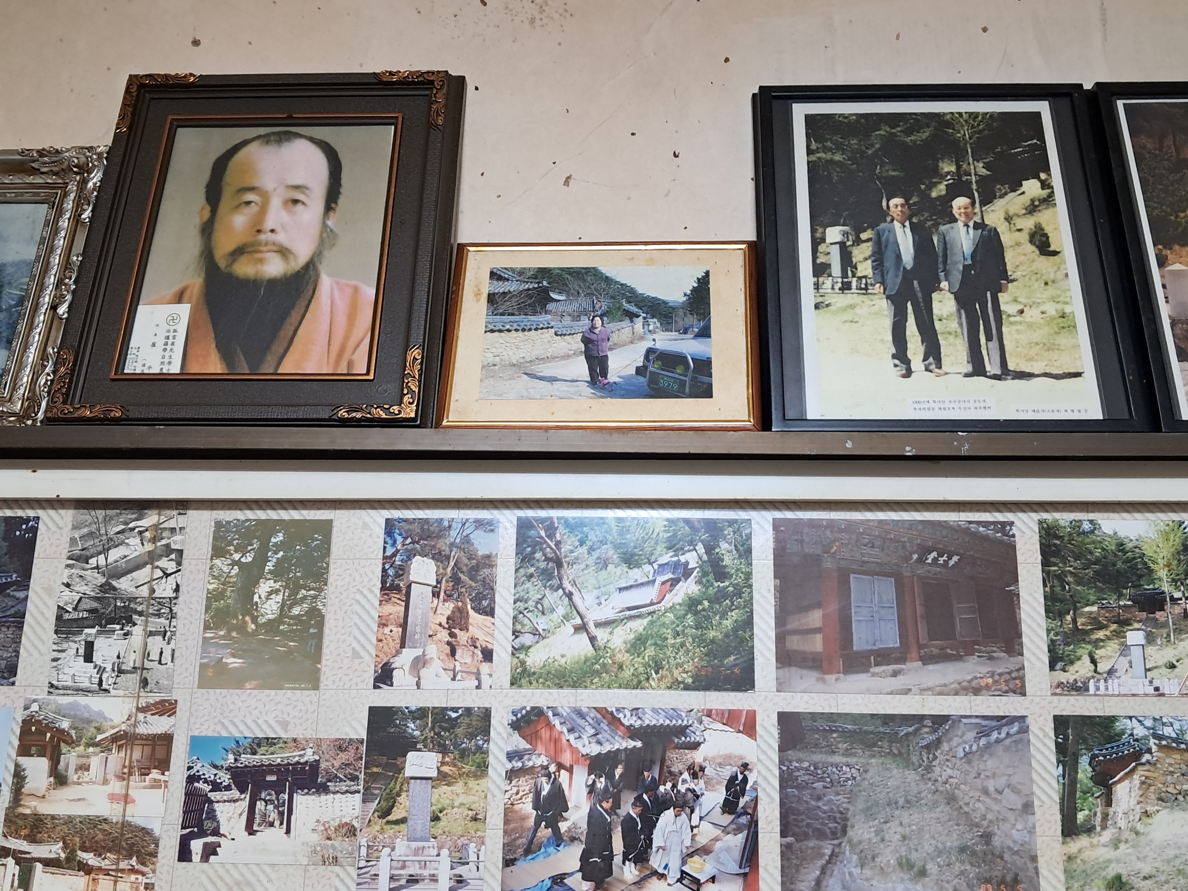 오늘사진 글 / 옛날 가야서당 덕원정 주택과 홍류동 마을 이다, 전나무와 학사대 대문이 있었는데 해인사가 철거하고 공사로 나무를 죽이고, 집터라는 비석은 고운암이 이용하고 홍류동천 농산정 정자는 이용당하고, 사실은 1989년에 최평열이가 127호로 문화재등록하였는데, 학사당 영각 허물고있어 이곳으로 온겨 모시고, 가야산 홍류동, 문창후 고운 최치원 선생 학사당유걔 농산정유계 만들어 추모 행사하던 그때 상황사진 등과