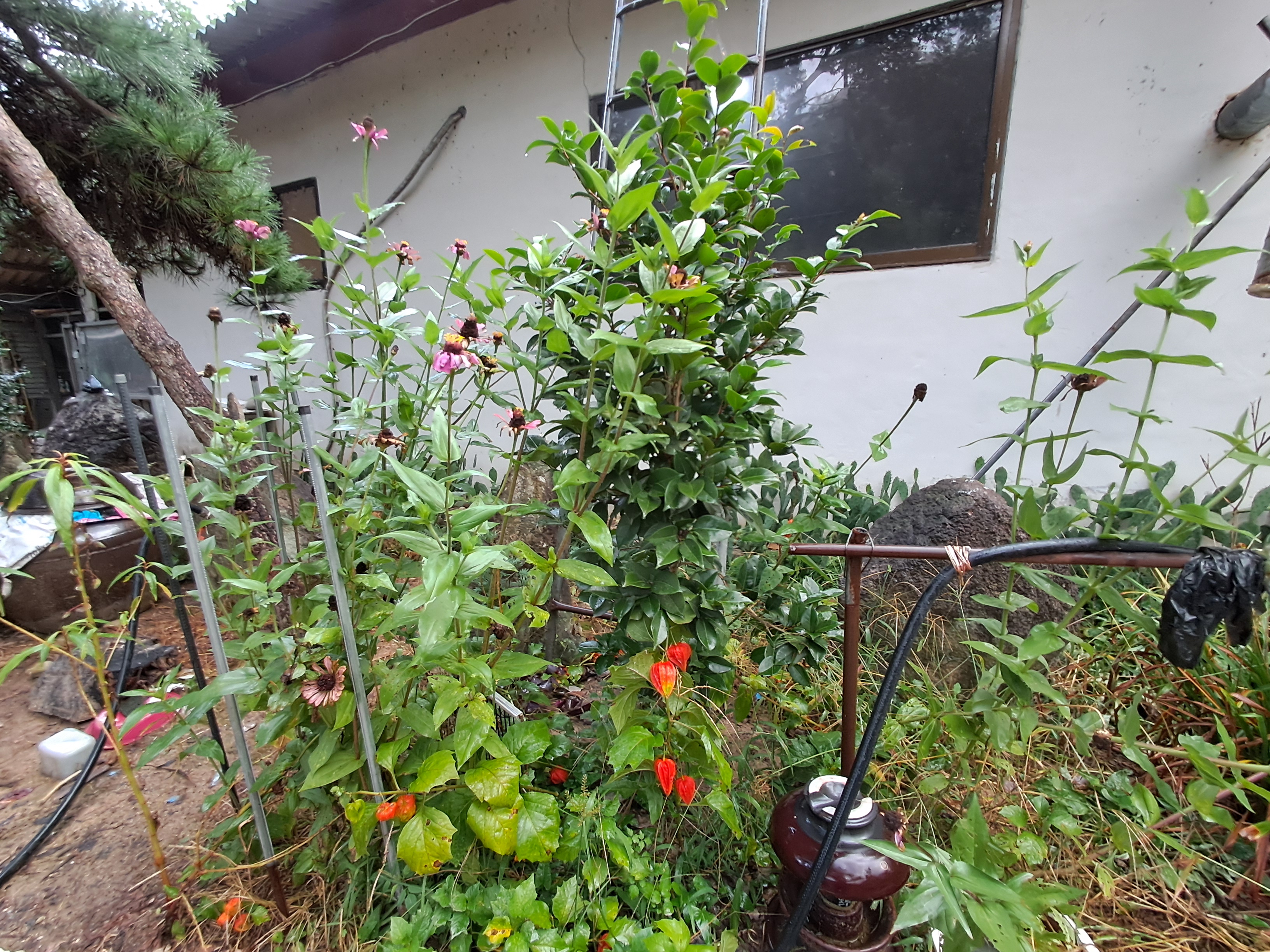 위 나의 중시조님 이신 문창후 고운 최치원 선생님전에 향불피우고 나의소원 기도한다, 밖에 꽃과 텃밭 견(개) 밥준다, 나팔꽃 가리 봉숭화꽃 백일홍꽃 메롱나무꽃 장미꽃 민들나미꽃 다알리아꽃 아주까리 민드라미꽃 손바닫 선인장 메리골드꽃 느티나무 팽나무 숲 표고버섯장 경비견 개들 밥주고, 건조기 고추9근 말리고, 고추밭에 약치고 조상님상에 수박 등