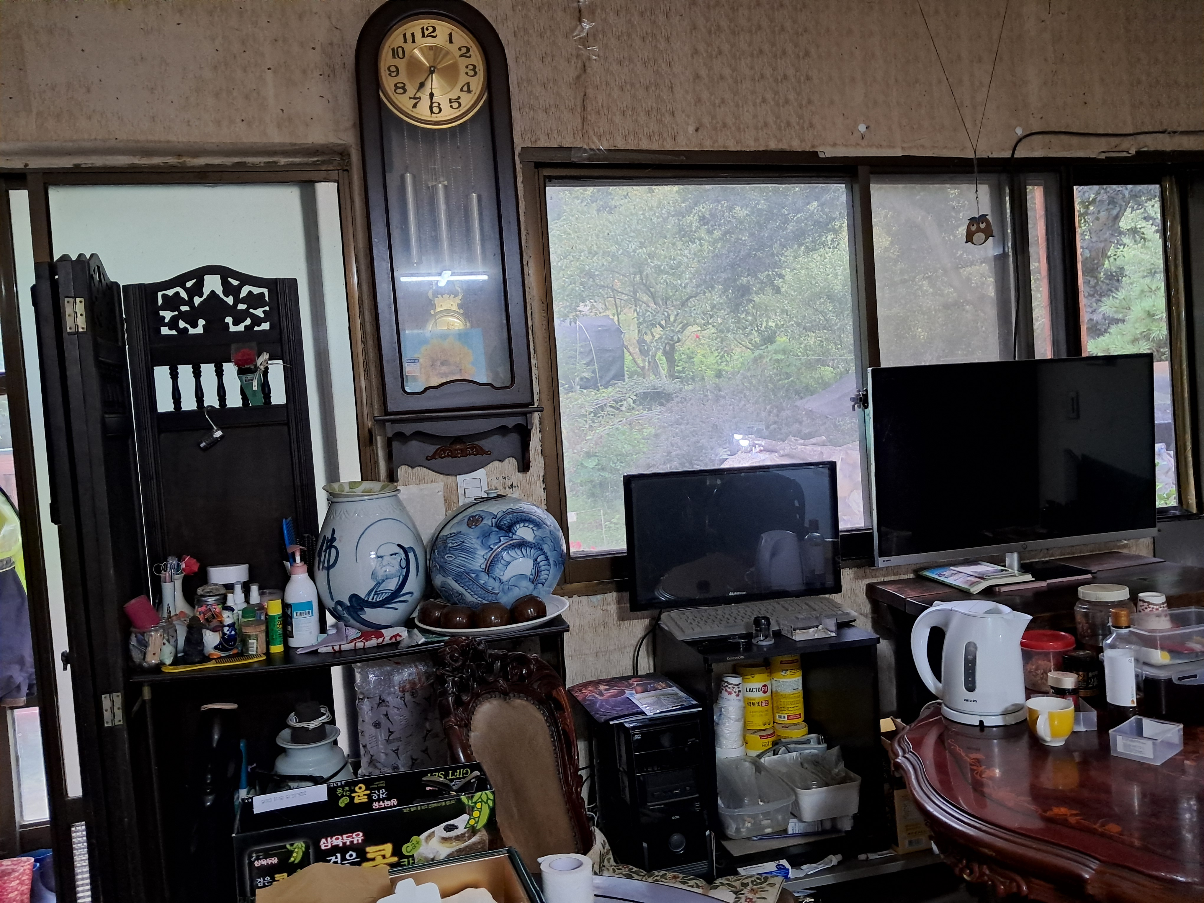 위 중시조님 이신 문창후 고운 최치원 선생님전에 향불피우고 소원 기도하고, 문 밖에는 꽃밭 텃밭 느티나무 팽나무 소나무 표고장에 경비견 개 고양이 닭이있고 봉숭화꽃 백일홍꽃 메롱나무꽃 민들나미꽃 다알리아꽃 아주까리 손바닫 선인장 메리골드꽃 등과 텃밭에는 고추 가지 오이 들깨 단파 배추 무우 고구마 땅콩 생강 감나무 등이있고, 나의 가묘 알바위 샘 보수하고, 손주들 할매가 아래 고추따고 부터 몸살 낮은것 갖구나 오늘 죽을 고비를 넘겻다는 병원 치료하는 등