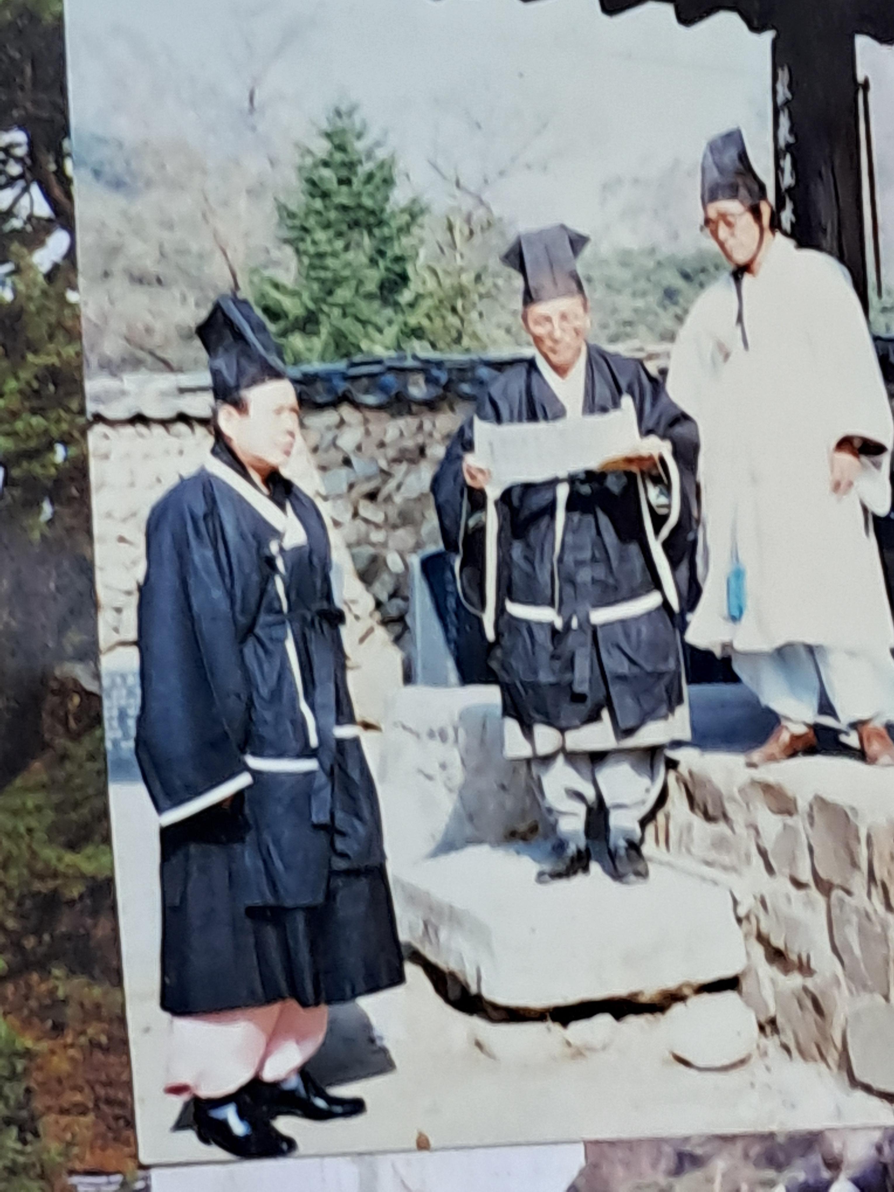 오늘사진 글 / 옛날(1996년 분쟁전후) 학사당 농산정 덕원정(청원정. 부속건물 가야서당, 주택)이 있었다, 학사대 (전나무. 대문), 고운 최선생 집터(고운최선생구저은일지비석), 농산정 정자 1989년 무렵 문화재신청 제127호이 있고 지금 학사당 영각은 모두 고운 최선생유적지이다, 일부 허물고 있어 복원해야 하고 중시조이신 문창후 고운 최치원 선생을 추모하는 행사는 학사당에서는 학사당유걔가 농산정에서는 농산정유계 가 해왔는데, 그때 그 상황 사진 등과