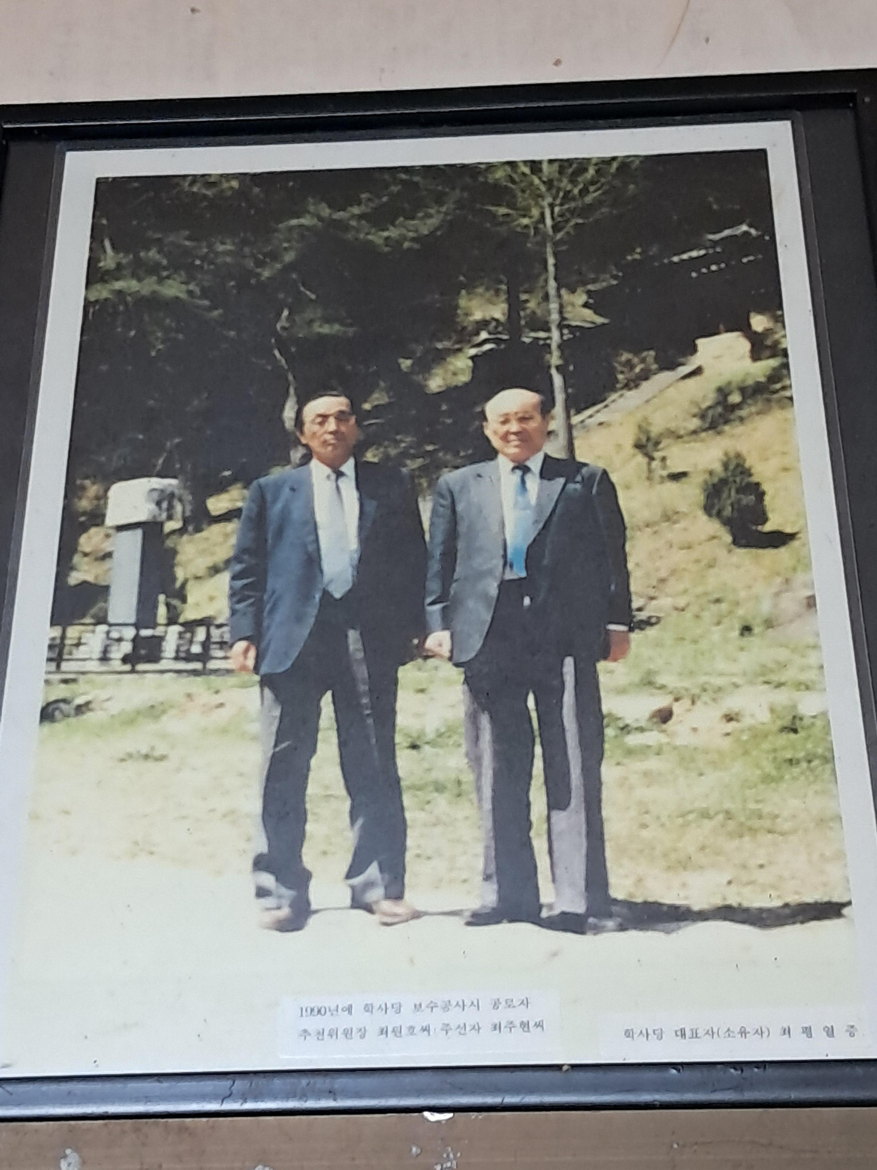 오늘사진 글 / 옛날(1996년 분쟁전후) 학사당 농산정 덕원정(청원정. 부속건물 가야서당, 주택)이 있었다, 학사대 (전나무. 대문), 고운 최선생 집터(고운최선생구저은일지비석), 농산정 정자 1989년 무렵 문화재신청 제127호이 있고 지금 학사당 영각은 모두 고운 최선생유적지이다, 일부 허물고 있어 복원해야 하고 중시조이신 문창후 고운 최치원 선생을 추모하는 행사는 학사당에서는 학사당유걔가 농산정에서는 농산정유계 가 해왔는데, 그때 그 상황 사진 등과