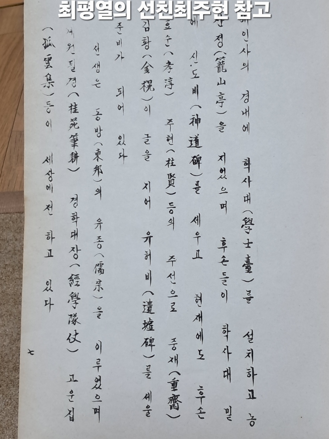 1. 공지상항: 홍류동 학사당 농산정 가야서당 학사대 등 고운 최치원선생 유적관련