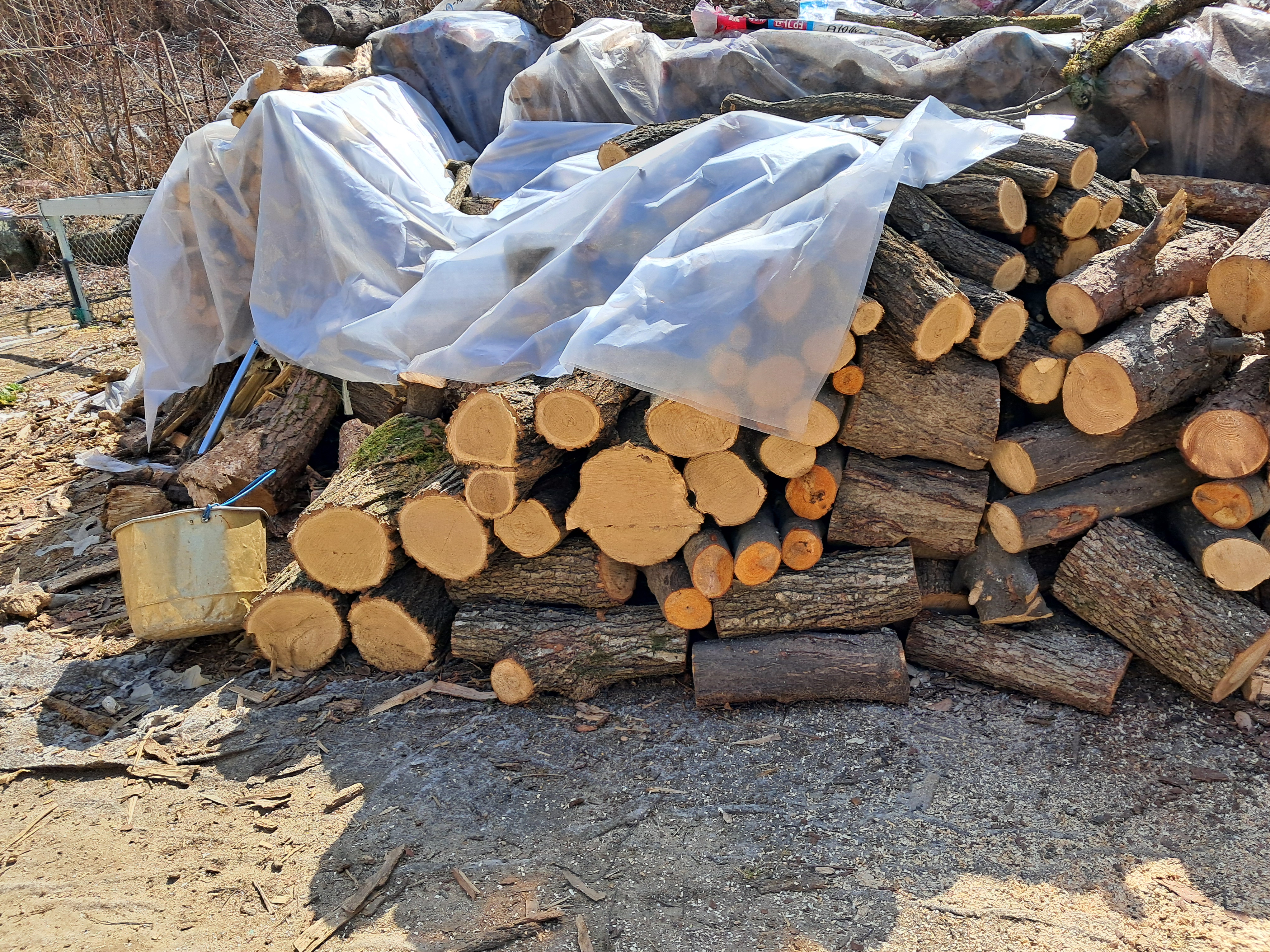 장작벽난로불피우고, 경비견(개) 고양이 닭 사료주고, 조부님 부모님 증조부님 산소에 아내와 기도하고