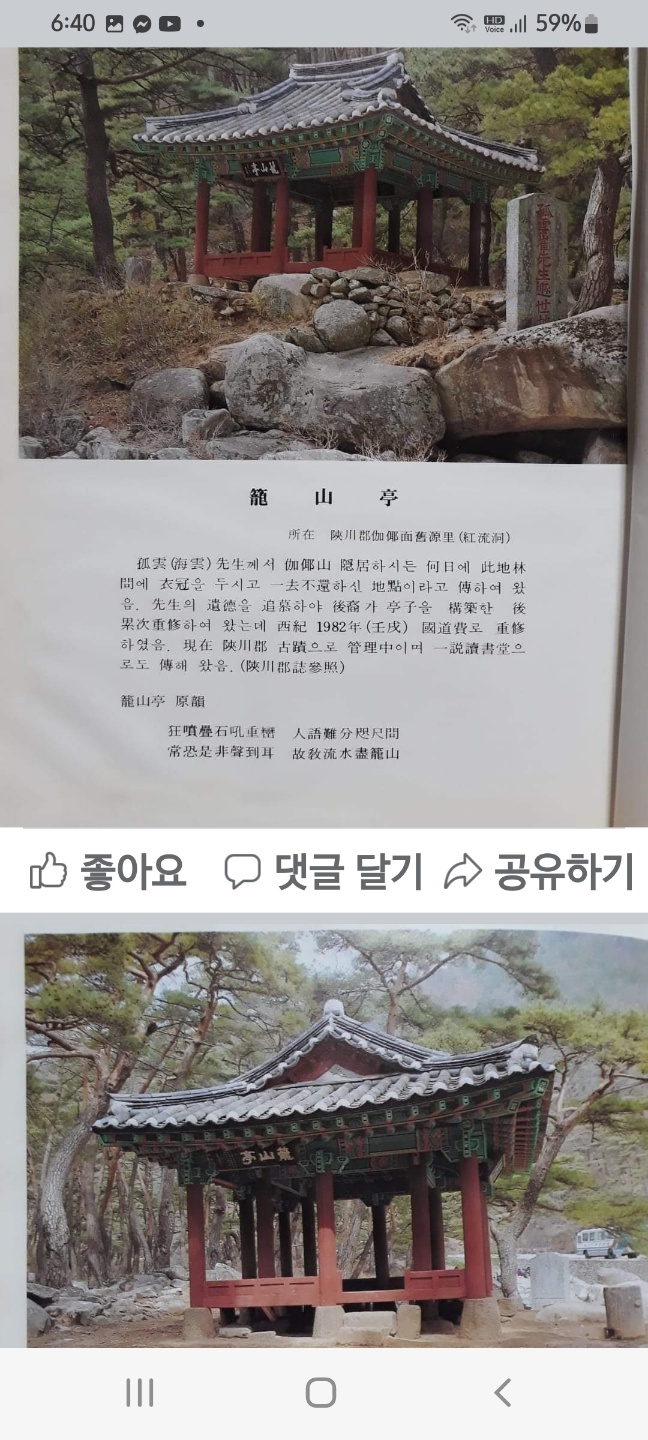 (1)가야산{해인사} 홍류동 학사당 농산정 가야서당 농산정계회 학사당계회가 고운 최(치원)선생님 기리던 사진 및 직계사대조님 전에 향불피우고 기도하고