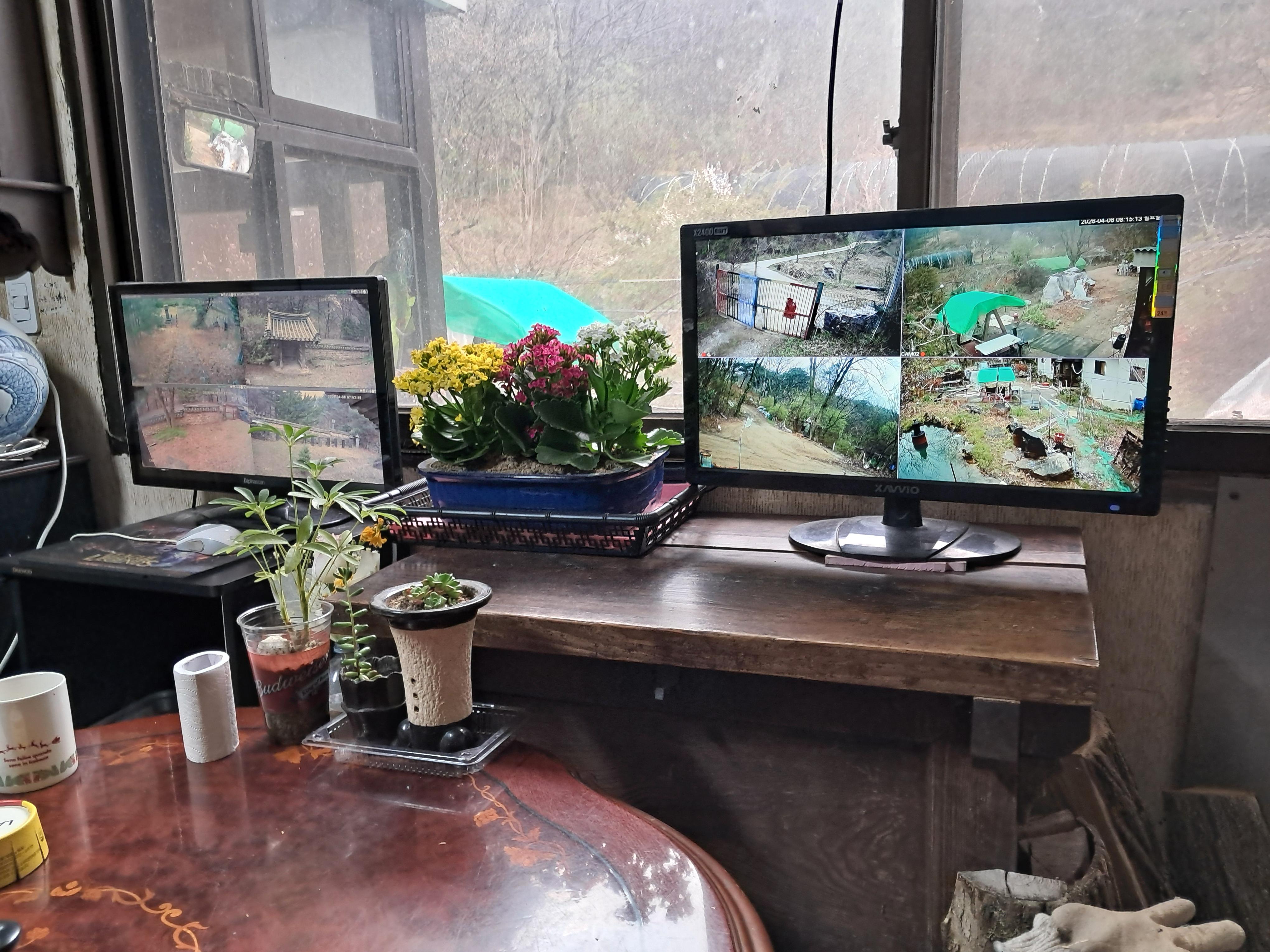 수선화꽃피고 목단꽃봉우리 난초 생강꽃 메실꽃 살구꽃 피자두꽃 홍매화꽃 진달꽃(참꽃) 벗꽃 금잔화꽃 등이 피고 있다.